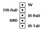 Gemeinerweise unterscheidet sich die Anschlußbelegung einer ASUS-Infrarotschnittstelle von der einer Hewlett-Packard.Nochmal für alle:Do not connect an HP C4103A directly to any ASUS mainboard!!! If you want to do so, look at the pages of Ralf Probst.Schließt man die HP-IrDA C4103A an das ASUS-Board an, so brennt sofort die Sicherung auf der Buchsenplatte durch. Zum Glück ist da eine drauf! Denn die Betriebsspannung von 5V wird mal eben kurzgeschlossen.Update 1: Daniel Eggel hat etwas intensiver geforscht und im Web bei HP die Belegung des HP-Steckers gefunden: HP-C4103A (Stammt ursprünglich von folgender Seite: Hewlett-Packard ). Das Board TX97-E von Asus ist serienmäßig für eine IrDA-Schnittstelle vorbereitet. Sie kann auf 2 Arten angeschlossen werden: 1.: Mit dem Original - PS/2 Mouse, USB, Infrared Connector von ASUS, kostet etwa 35,-- euro. Dies ist ein Slotblech mit einem Stück Leiterplatte, auf der die o.g. Buchsen montiert sind. Es wird wie ein normales Slotblech in den PC geschraubt. Ein mitgeliefertes Flachkabel mit Stecker paßt genau auf die Schnittstelle neben dem obersten PCI-Steckplatz. Eine der Buchsen darauf ist die IR-Buchse, die wie folgt beschaltet ist: