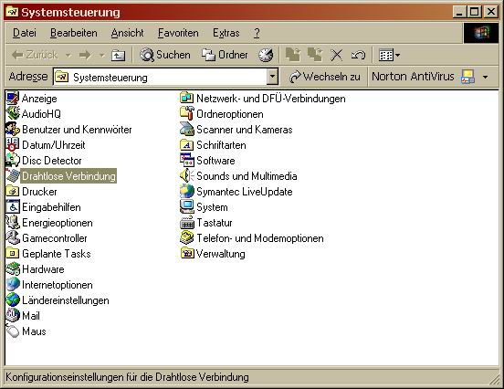 IRAssistent (www.irassistant.com) mit Infrarotport nutzen Von: Claas Michalik (claas22@gmx.de) Ich gehe bei dieser Beschreibung davon aus, dass die Infrarotschnittstelle bereits angeschlossen und unter Windows installiert ist. Sollten sie die Schnittstelle noch nicht installiert haben, befolgen sie dazu bitte die mitgelieferte Anleitung. Um mit Hilfe der Infrarotschnittstelle und einer gewöhnlichen Infrarotfernbedienung den Computer und damit Programme, wie z.B. Winamp fernbedienen zu können, ist es notwendig die bereits eingerichtet Schnittstelle unter Windows zu deaktivieren. Es ist somit nicht möglich, die IR-210B (oder einen anderen Infrarotport) gleichzeitig zur Fernbedienung des Computers und als "normale" Infrarotschnittstelle zu betreiben. Ich beschreibe im Folgenden, wie unter Windows 2000 vorzugehen ist, um die Schnittstelle zur Fernbedienung des Computers zu nutzen. Als erstes müssen sie, wie gesagt die Infrarotschnittstelle deaktivieren (sollten sie Windows95, 98 oder ME benutzen, so kann es sein, dass das Deaktivieren der Schnittstelle nicht ausreicht, sondern diese vollständig aus der Systemkonfiguration entfernt werden muss. Sollte also das im Folgenden beschriebene Verfahren nicht zum Erfolg führen, so deinstallieren sie die Infrarotschnittstelle bitte vollständig. Eine Anleitung und weitere Tipps dazu erhalten sie hier). Um die Infrarotschnittstelle zu deaktivieren wählen sie unter Start-->Einstellungen-->Systemsteurung die Drahtlose Verbindung aus, wie im Bild zu sehen.