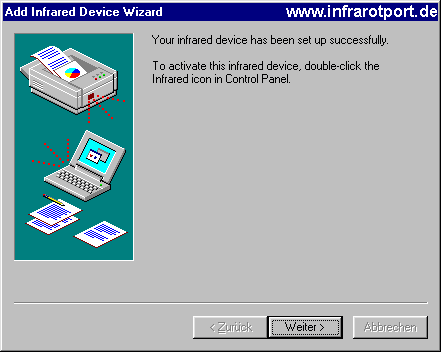 Die Infrarotport-Installation mit "Weiter" beenden: